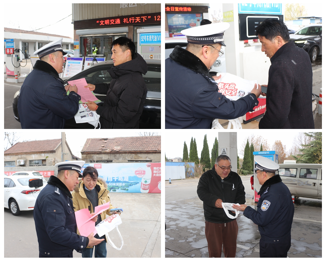 民警为驾驶人发放宣传材料和布包,围绕冬季恶劣天气安全驾驶、紧急避险常识等知识,引导驾驶人自觉遵守交通法规,文明驾驶、礼让出行。各交警中队通过进农村、进企业、进社区,以面对面宣讲、发放宣传材料、宣传制品、利用LED屏播放宣传标语等形式,开展丰富多彩的主题宣传活动。