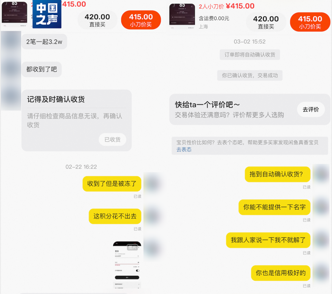 “如果账户没被冻结,商家就正常交易,店铺信用会上涨。如果出现账户被冻结,客户不会处理,他装作什么都不知道反咬你一口。类似我这种情况,他也不提供信息帮助我解封,如果我没有解释这笔积分的来源,积分可能就会退回到他的账户,他可以拿这笔积分再卖给别人。”