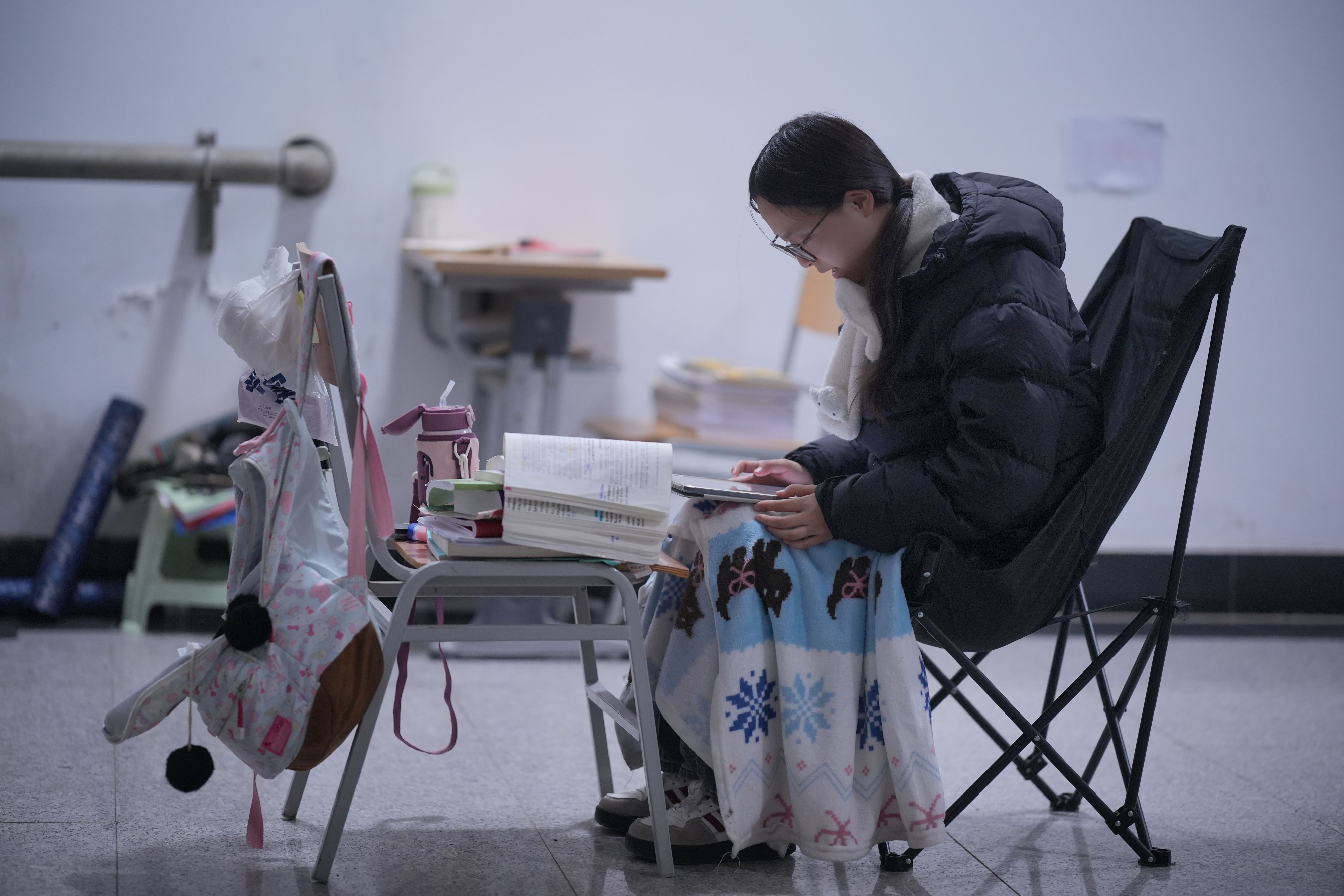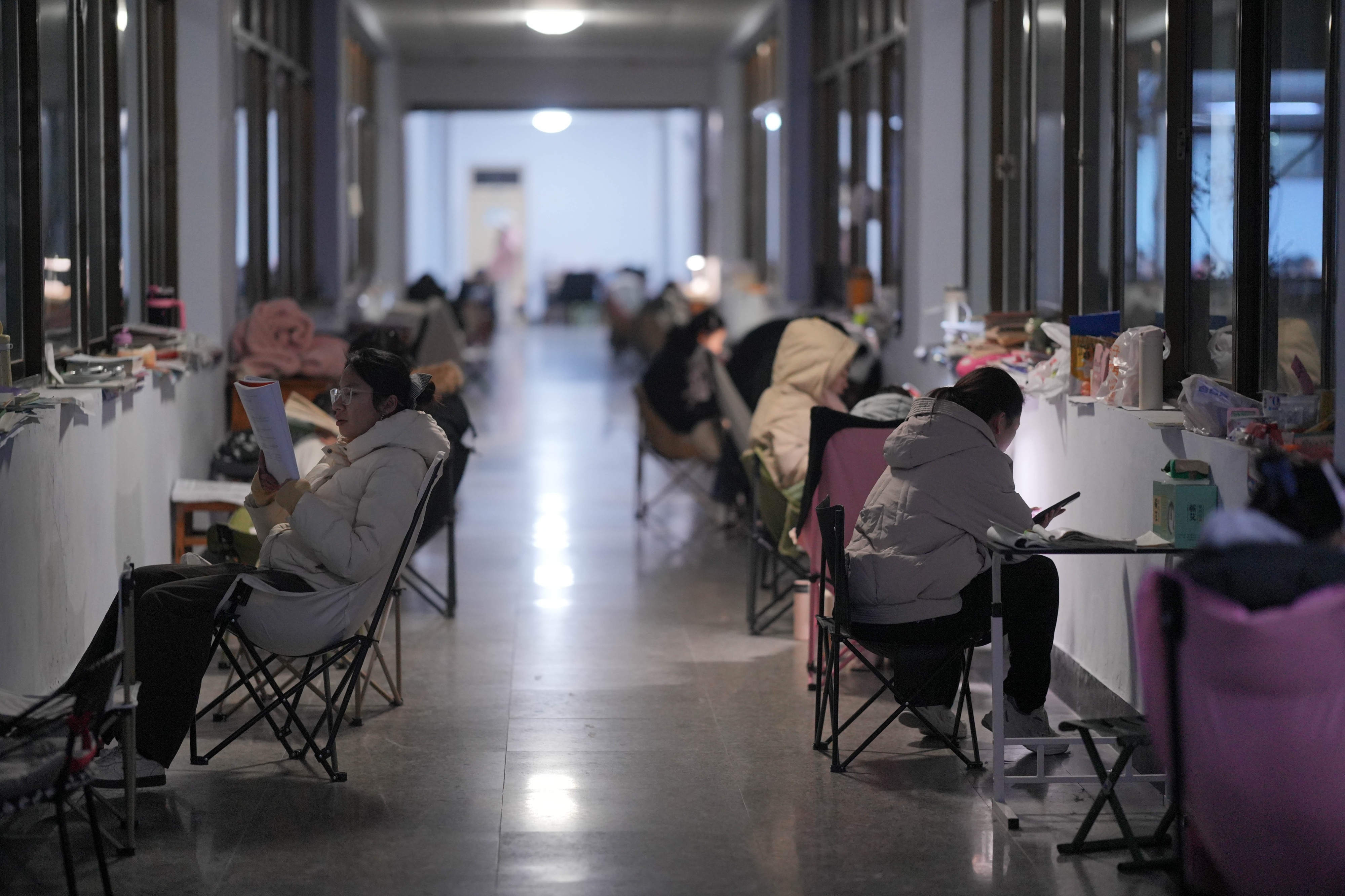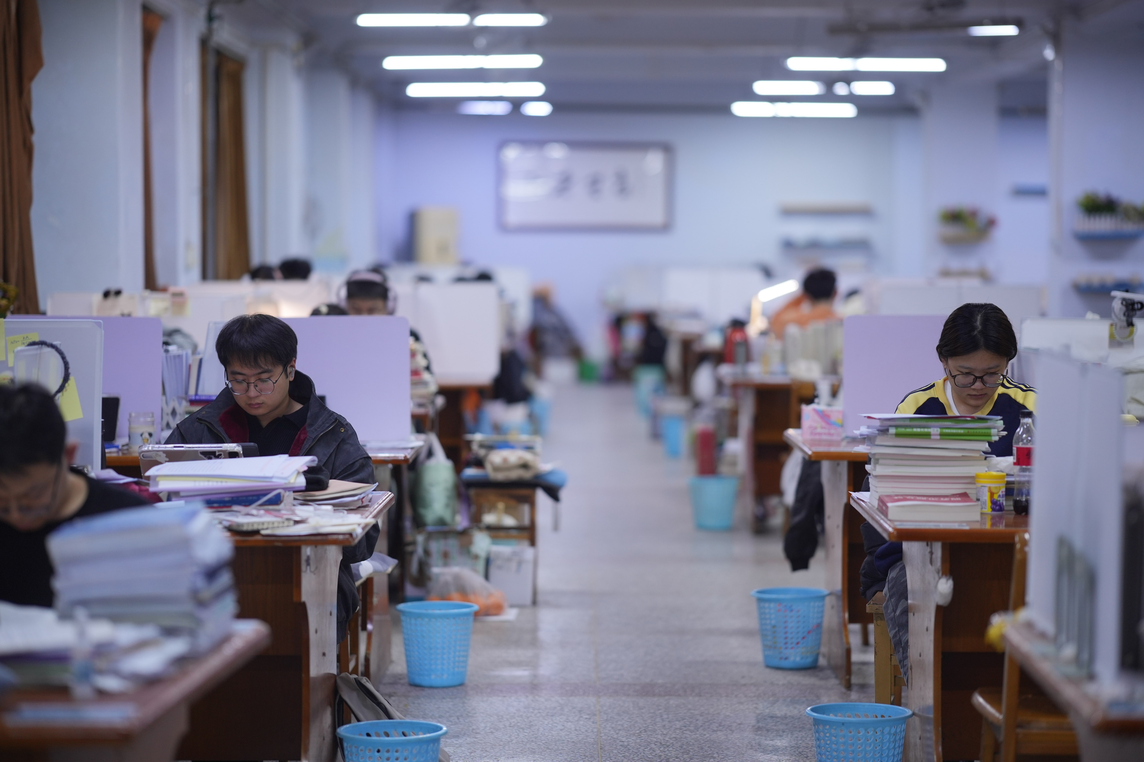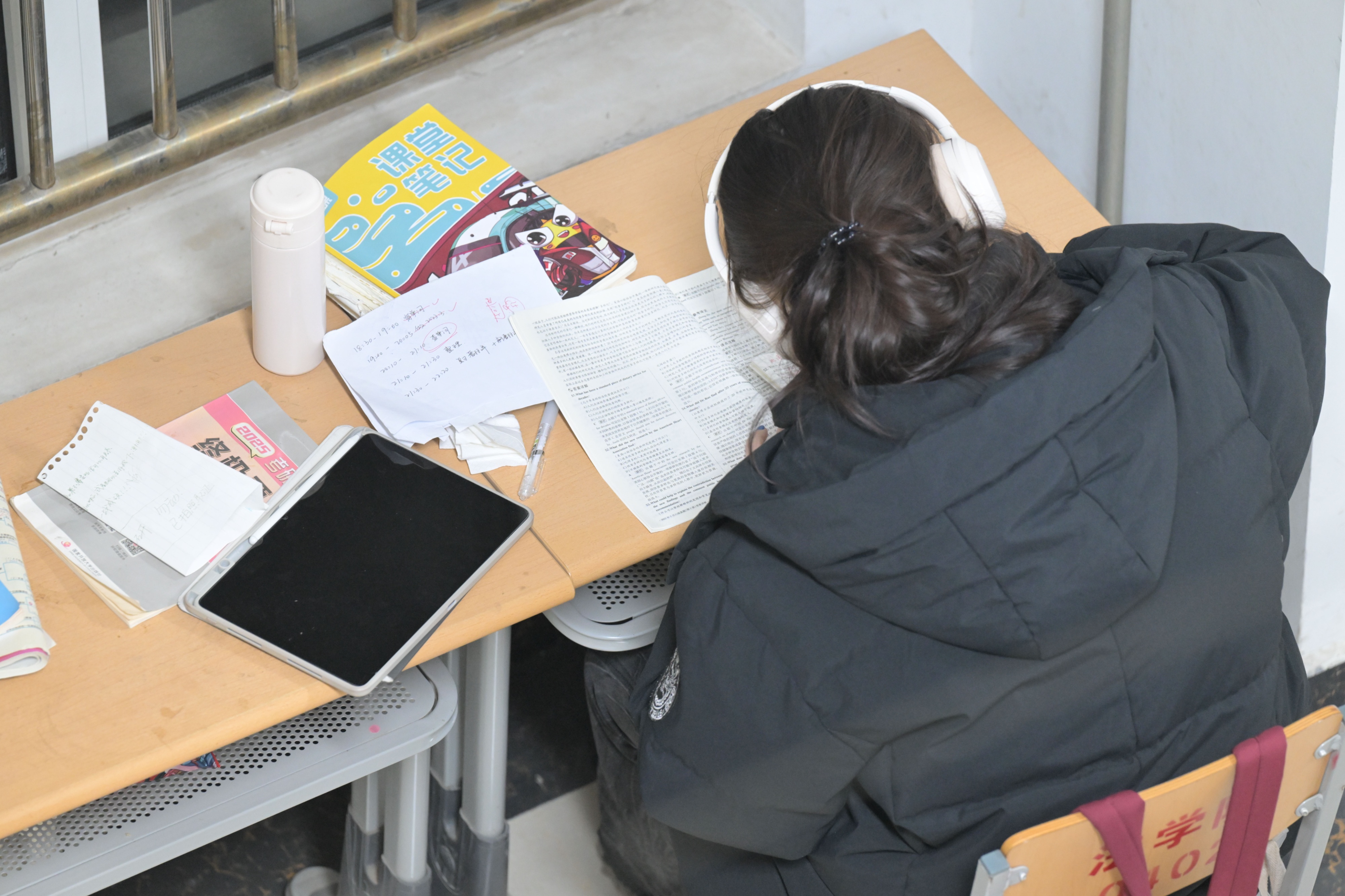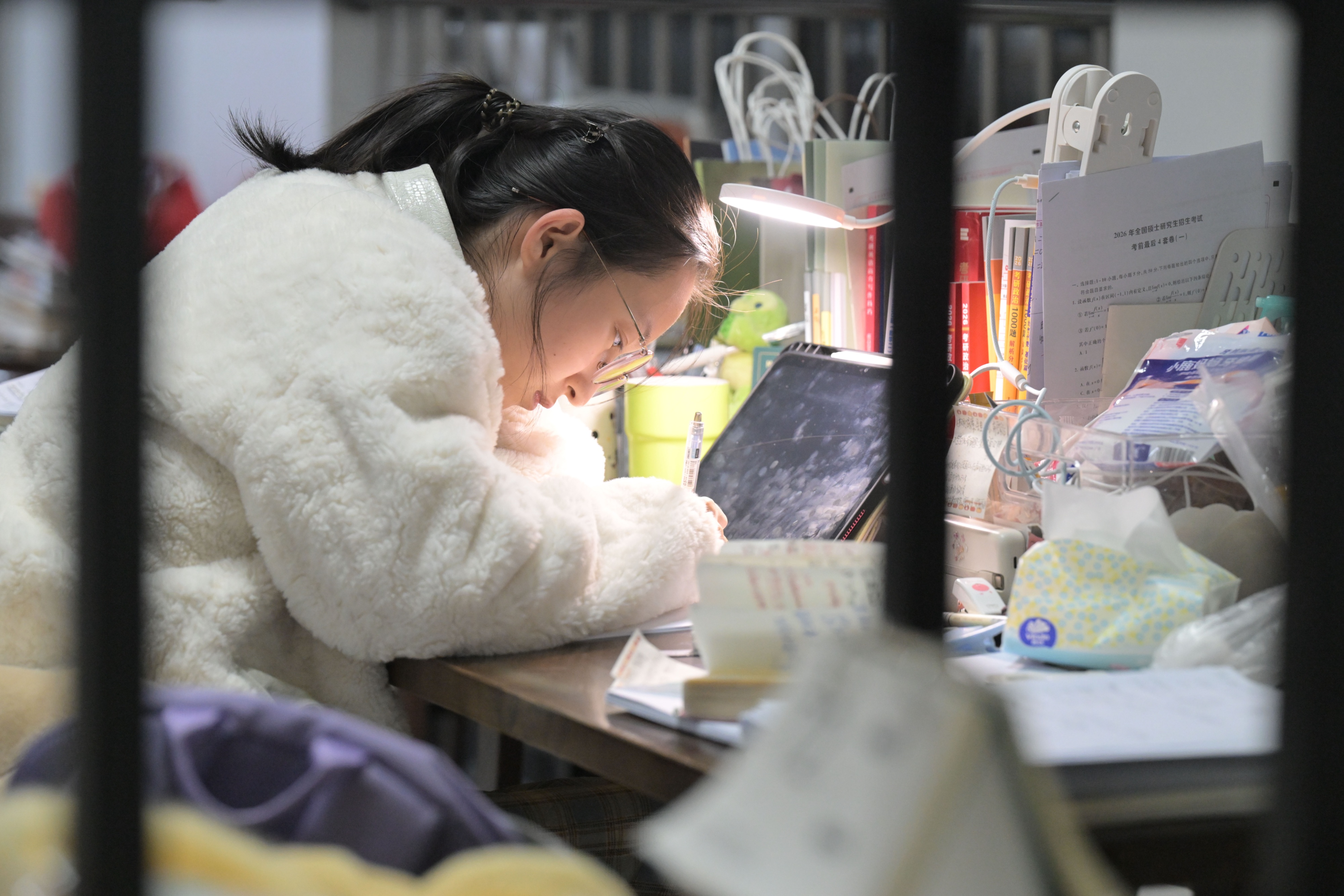 12月2日,在山东德州学院自习室、图书馆、教学楼等地,大学生们挑灯夜读,认真备考,为心中的理想做最后的冲刺,书桌上、地面上都堆满了成摞的学习资料。据悉,2026年全国硕士研究生招生考试初试时间为2025年12月20日至21日。