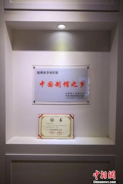 中国制帽之乡奖状。刘媛媛 摄