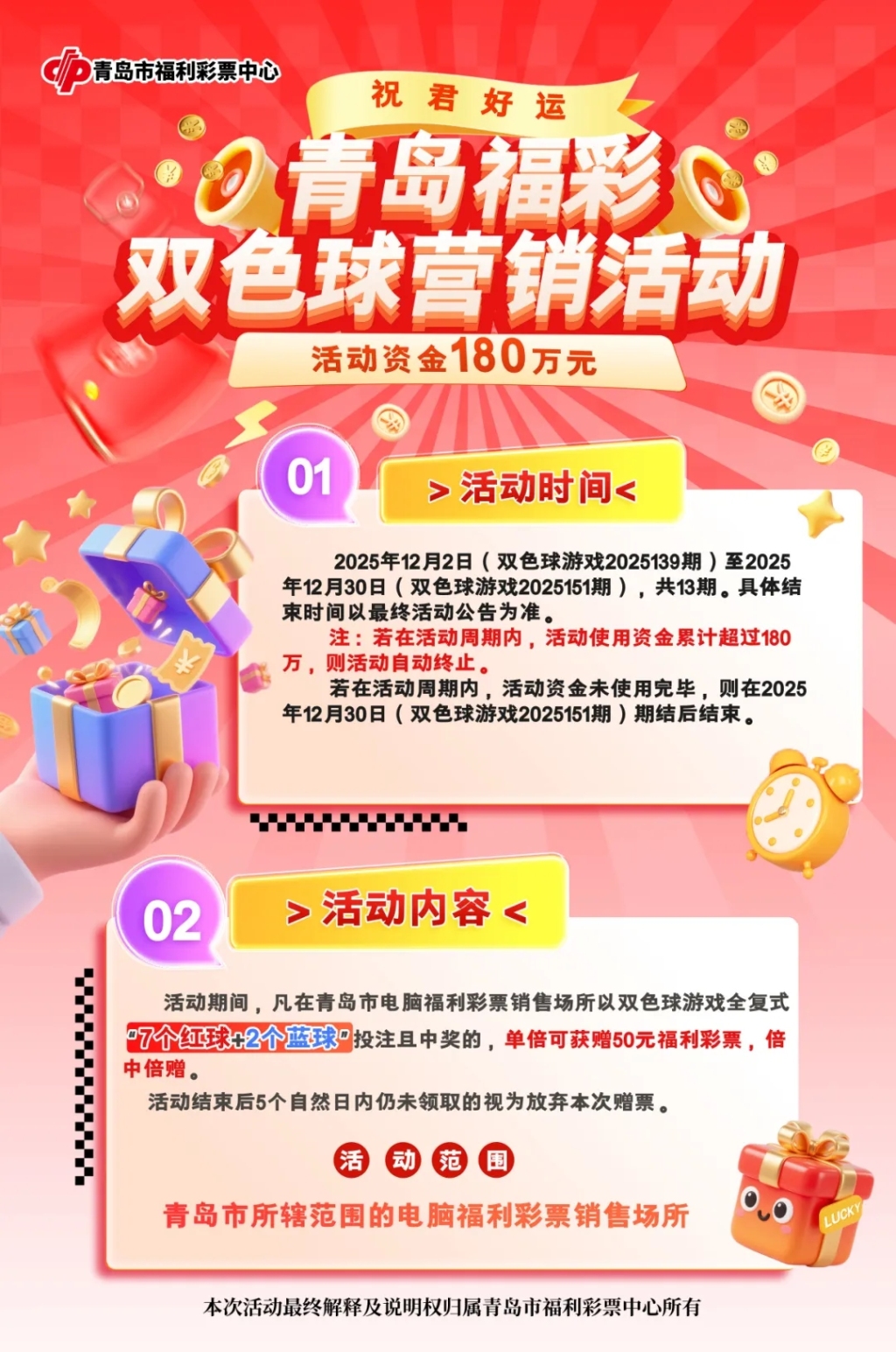 若在活动周期内,活动资金未使用完毕,则在2025年12月30日(双色球游戏2025151期)期结后结束。