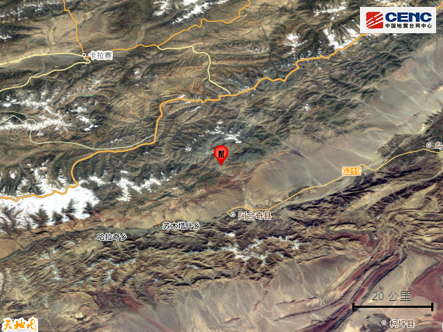 据中国地震台网正式测定,12月4日15时44分在新疆克孜勒苏州阿合奇县发生6.0级地震,震源深度10公里,震中位于北纬41.13度,东经78.40度。