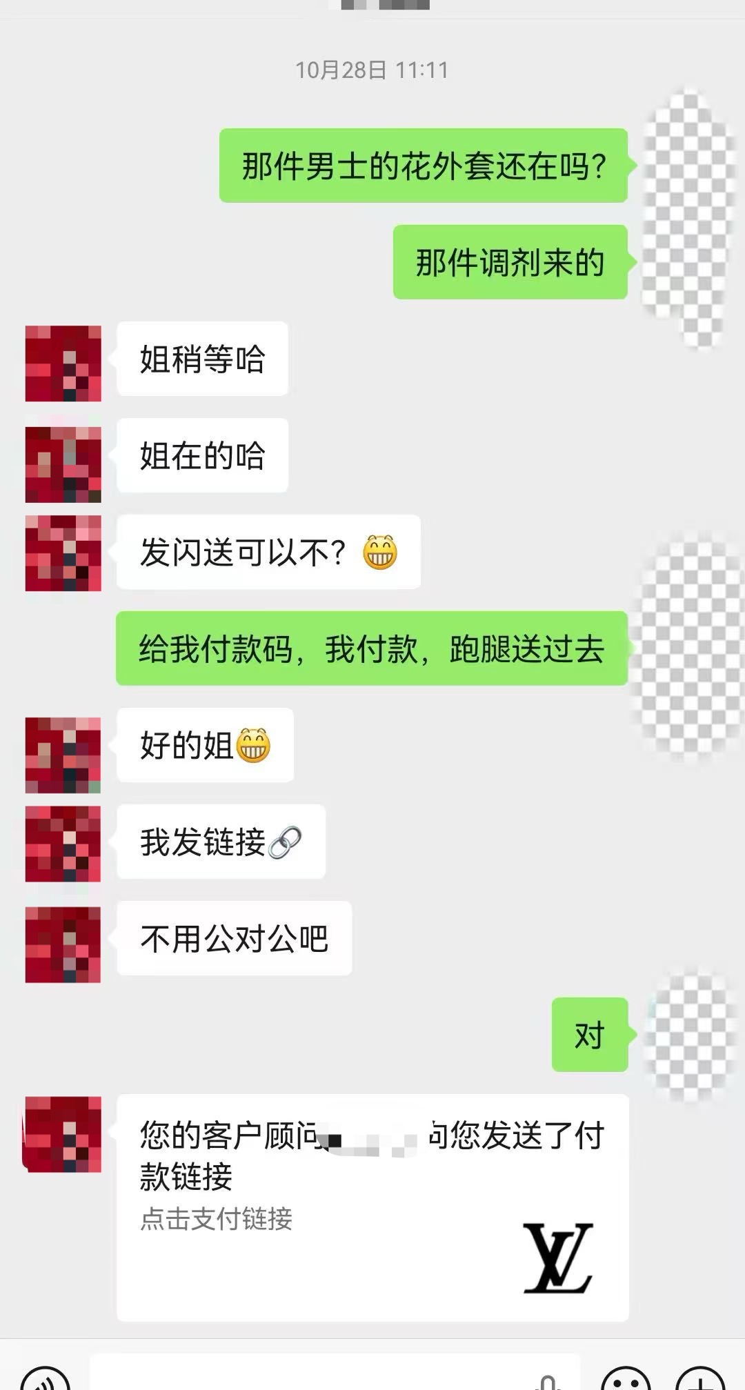 离店后,她仍对这件外套念念不忘,便通过微信联系了当时负责接待的销售人员。对方表示,可协助调剂合适尺码。于是双方通过微信完成了购买,外套也经闪送跑腿直接寄到侯女士家中。