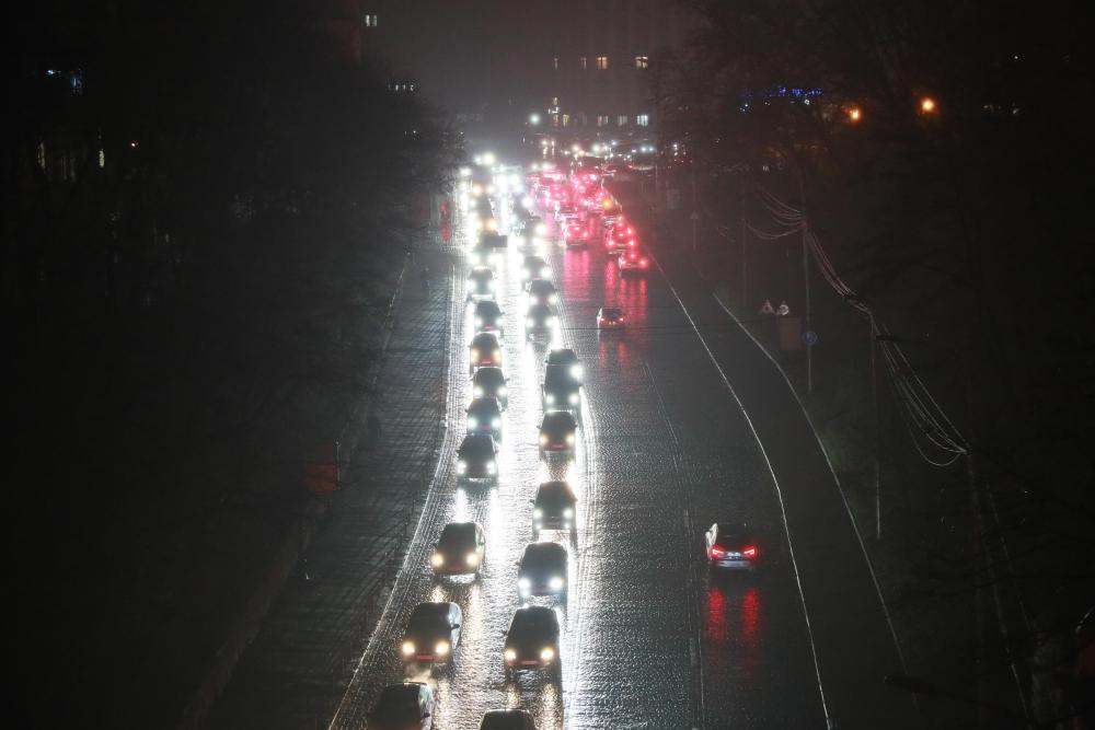 11月20日,乌克兰首都基辅主要街道的照明设施出现大面积停电,车辆在夜色中行驶。 新华社