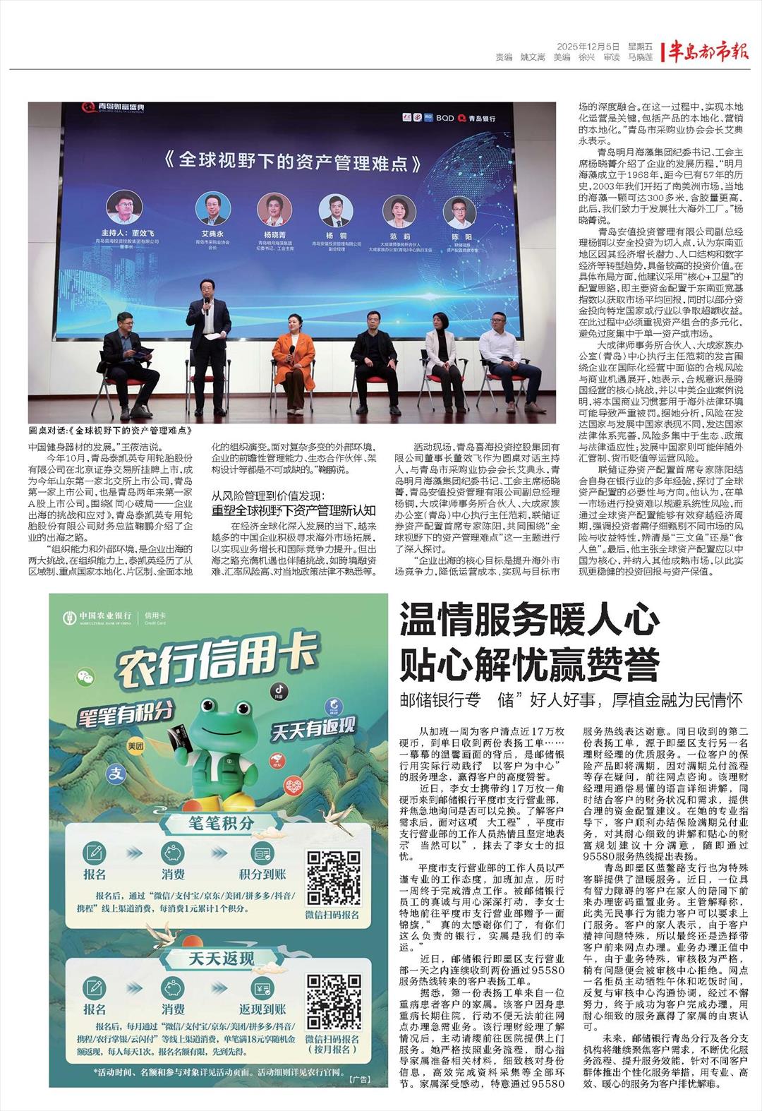 12月3日下午,2025青岛财富盛典暨新格局下的全球产业链接以“跨境·融通·共赢”为主题,深入探讨全球经济大变局对投资理财市场的影响,探索金融如何更好地助力企业出海,帮助企业更高效、更安全地融入全球价值链,为财富管理高质量发展注入新动能。