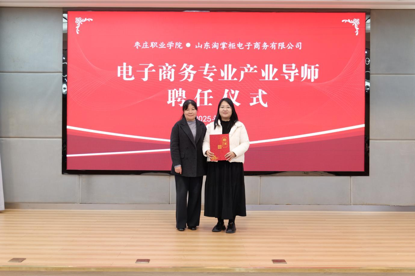 会议现场,校企双方共同为智能客服产教融合实训基地揭牌,并为电子商务专业产业导师颁发聘书。这一举措标志着枣庄职业学院与山东淘掌柜电子商务有限公司的合作迈入实质性阶段,也为学院“双师型”师资队伍建设注入产业活力。校企双方表示,该实训基地将整合企业产业资源与学院教学优势,打造集教学、实训、科研、就业于一体的综合性平台,通过开发产业适配课程、组建双师教学团队、构建沉浸式实践场景等方式,实现“学习即实战、毕业即上岗”的人才培养目标。