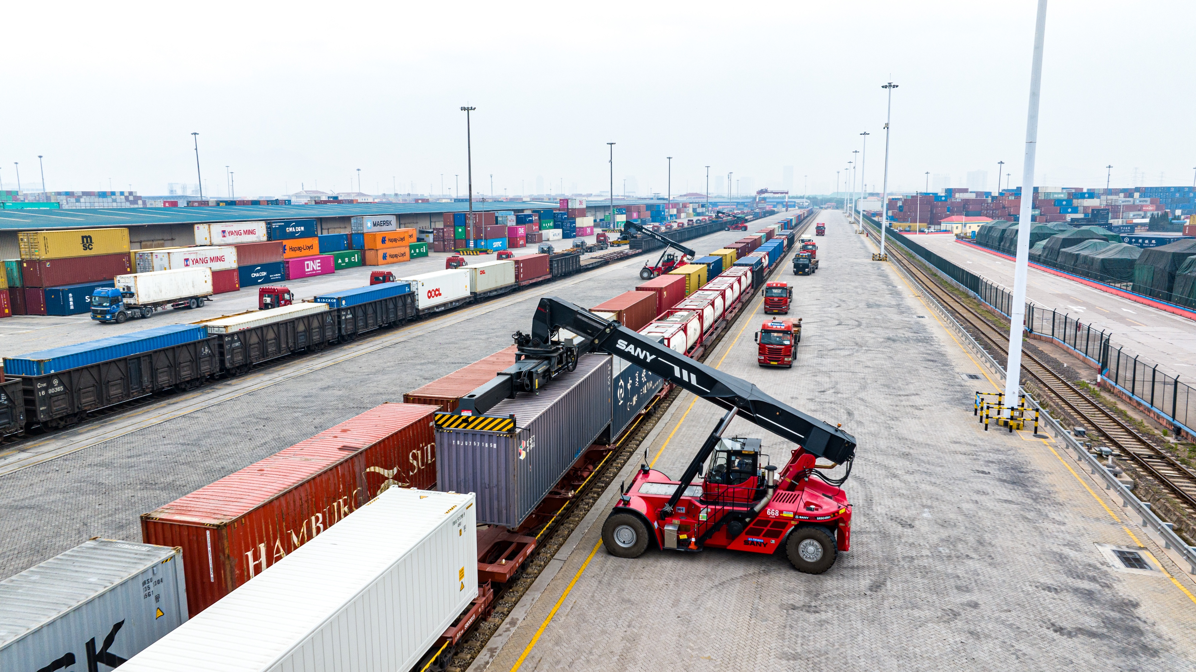 在陆向通道建设上,山东港口开通大列线路106条,联动沿黄流域、长三角、珠三角等重点经济区域,实现国内主要经济板块的高效联通。