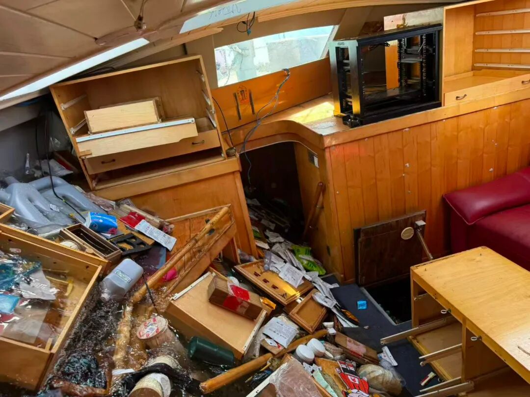 • 航行船只设备全部遭毁灭性劫掠拆毁,包括发动机、发电机、缆索帆具、救生艇、舷外机等核心部件,以及船上所有电器、家具等物品;