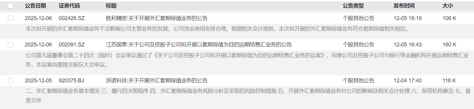 多家A股上市公司公告称拟开展外汇套期保值业务。来源:Wind