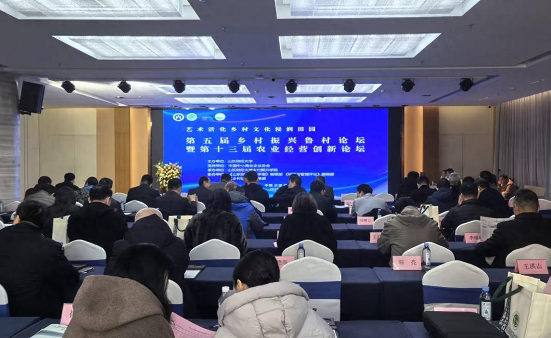12月6日,由山东财经大学主办,山东财经大学乡村振兴学院承办的第五届乡村振兴鲁村论坛、第十三届中国农业经营创新论坛暨乡村振兴学院建院五周年发展大会,在沂源鲁村桃花岛举行。本次论坛以“艺术活化乡村,文化浸润田园”为主题,汇聚来自全国各地的党政领导、专家学者、企业代表及基层实践者,通过主旨演讲、大会发言、圆桌论坛、成果展示、实地观摩等多种形式,共话乡村振兴新路径,共谋农业农村现代化新蓝图。
