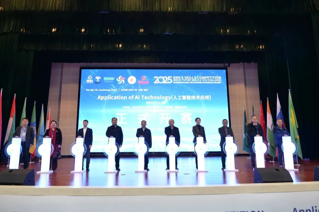 12月5-7日,2025金砖国家职业技能大赛人工智能技术应用赛项国际总决赛在枣庄职业学院举办,来自金砖国家中国、哈萨克斯坦、俄罗斯、南非、印度的70余名参赛选手齐聚一堂,以技会友、同台竞技,在人工智能领域展开高水平比拼。