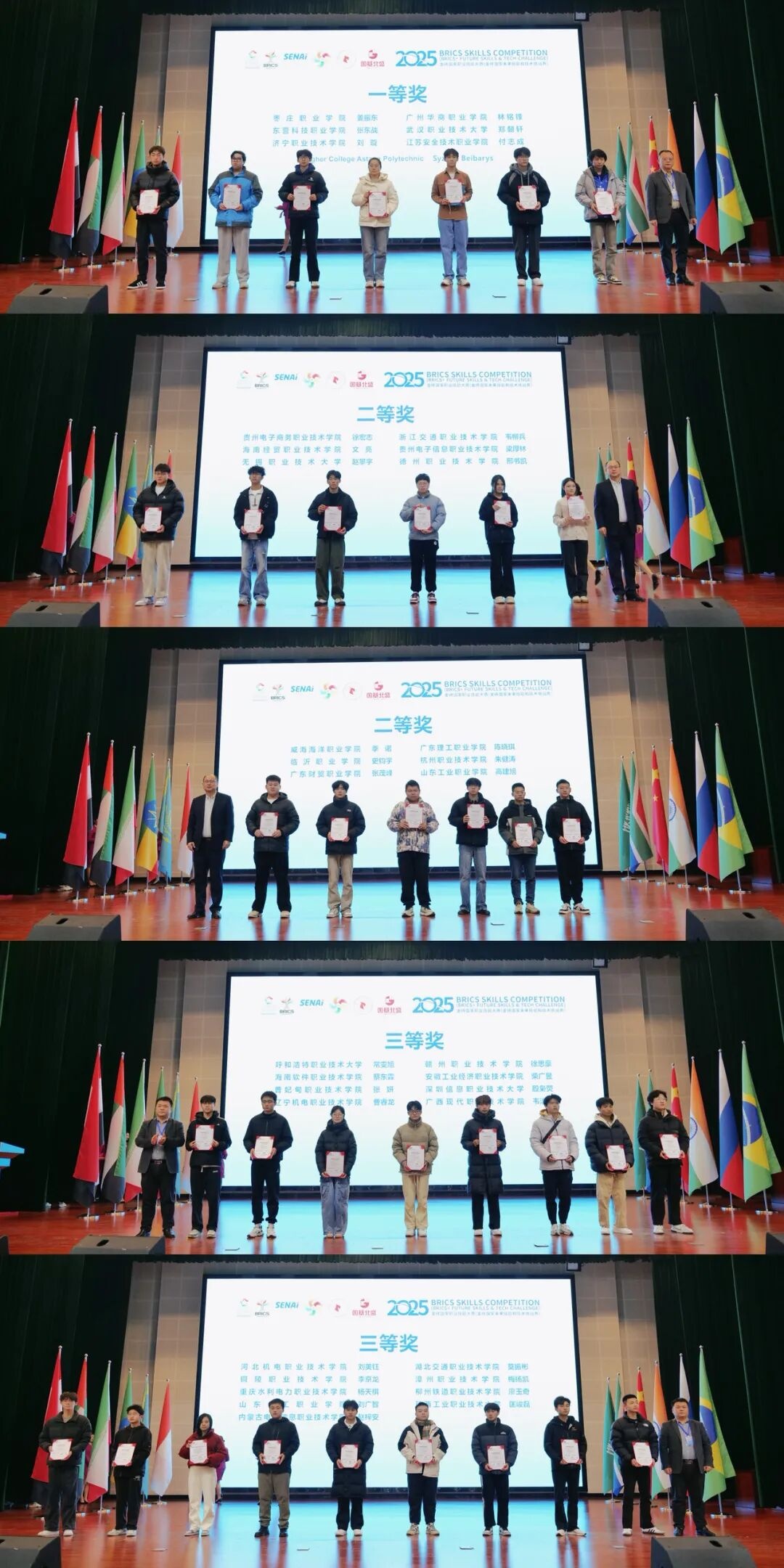 12月7日上午,2025金砖国家职业技能大赛人工智能技术应用赛项国际总决赛在枣庄职业学院顺利闭幕。来自金砖国家中国、哈萨克斯坦、俄罗斯、南非、印度的70余名参赛选手同台竞技、激烈角逐,最终评选出一等奖7个、二等奖12个、三等奖17个,优秀指导专家19个,优胜奖牌3个,金牌1个,银牌2个,铜牌1个。