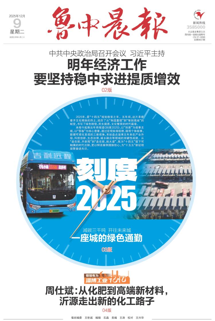 今起,本报推出年终特别策划《刻度2025》,以“刻度”为叙事主线(时间刻度·发展刻度·民生刻度),以“答卷”核心意象,通过宏观脉络梳理、微观个体叙事、数据可视化呈现的三维视角,系统盘点淄博五年来在产业升级、科技创新、生态治理、城乡融合等领域的突破性成就。从“走在前、开新局”到“走在前、挑大梁”,既为“十四五”留下可触摸的时代注脚,更以鲜活案例提振信心,为“十五五”新征程凝聚奋进共识。