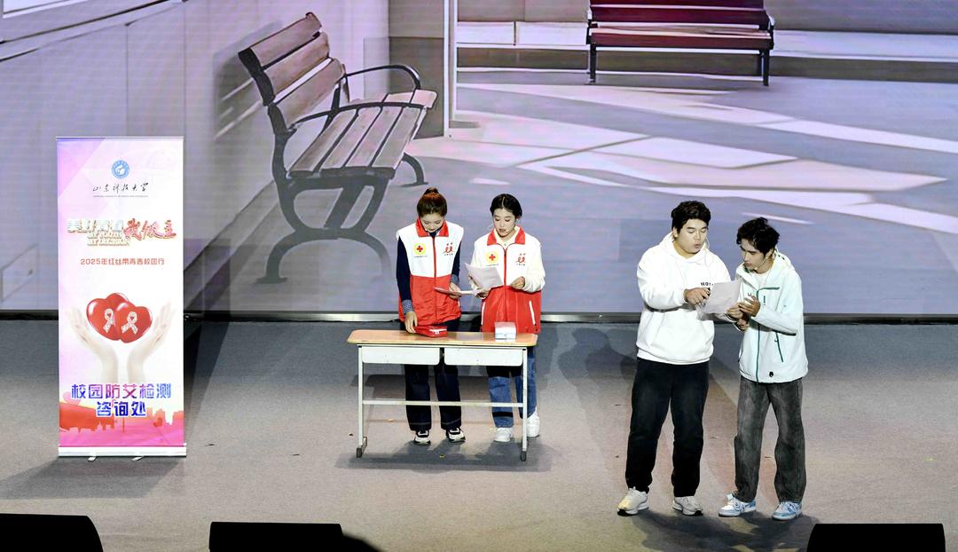 活动现场洋溢着青年的创意与热情。山东科技大学学生通过自编自演的防艾脱口秀《“艾”的方程式,我们一起来解》和情景剧《无“艾”青春白皮书》,将专业知识转化为生动故事。
