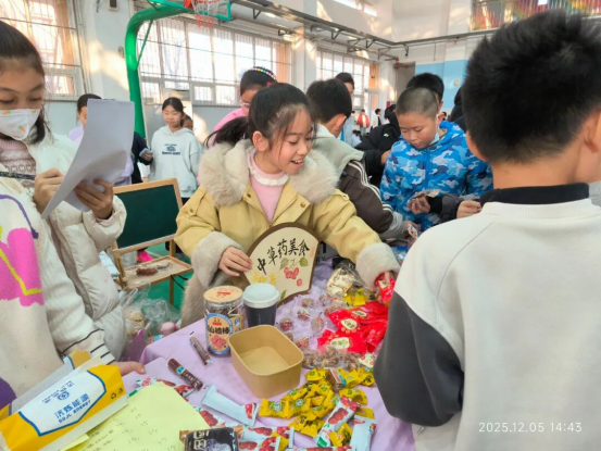 交易环节更是精彩纷呈,活动支持“以钱购物”“以物换物”两种灵活形式,尤其鼓励中医药相关物品的交换。小摊主们热情吆喝、主动推销,灵活运用打折让利等技巧吸引顾客;小买家们则文明议价、理性挑选,在一来一往的互动中锻炼了沟通表达与协商协作能力。诚信交易的氛围贯穿始终,孩子们在收获心仪好物的同时,更学会了尊重与理解,体会到劳动与分享的快乐。
