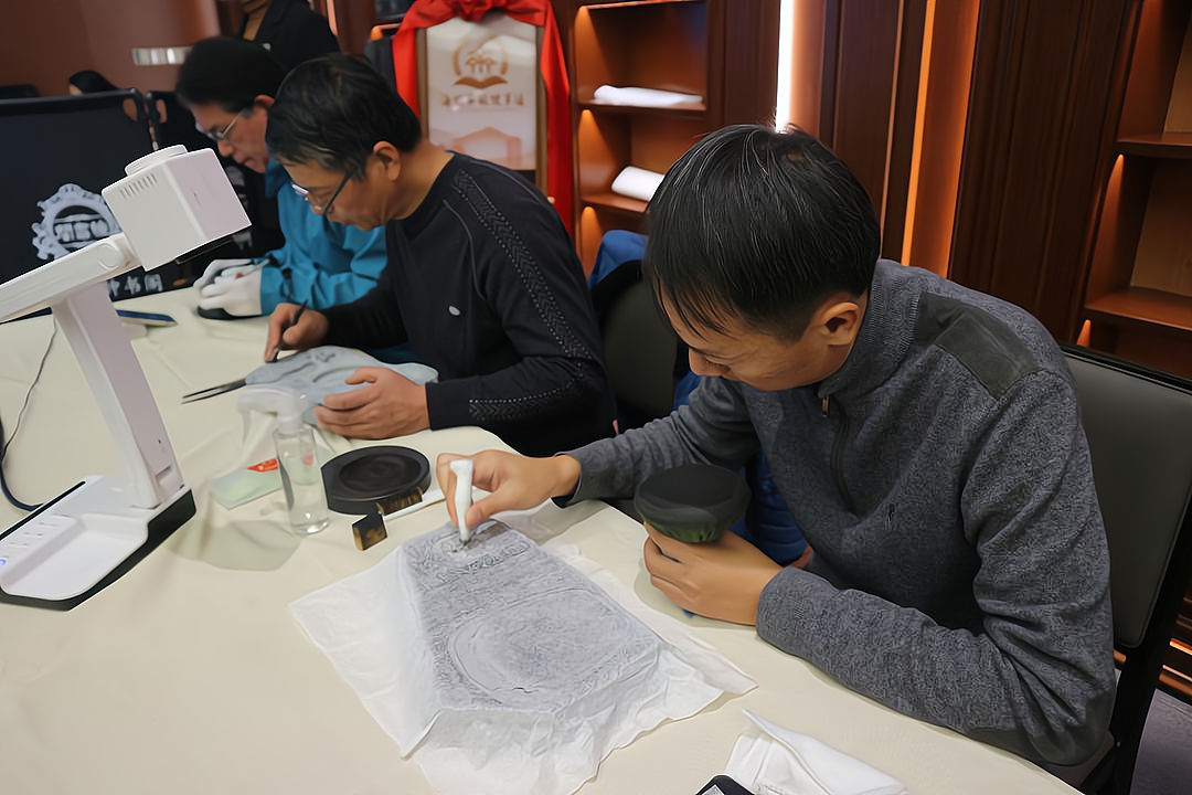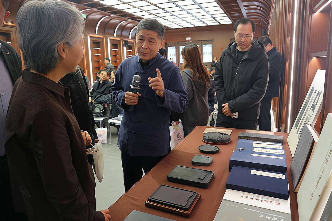 在轻松融洽的氛围中,主题分享环节温情上演。山东省工艺美术大师常宗林从“砚台的历史与文化价值”“淄砚简介”“淄砚的其他称谓与产地”“淄砚的工艺传承”“砚铭文化”“重塑淄砚新形象”等方面,讲述了淄砚的传承故事。全形拓非遗传承人张洪雷,通过现场展示让大家亲身体验感受了砚铭篆刻、拓印的乐趣魅力。