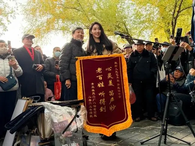 孙楚泊在接受采访时称,让自己印象最深刻的,是青岛一位80多岁的爷爷,托北京的亲戚送来锦旗,上面写着“心灵美 笛声妙 老百姓 听得到”。