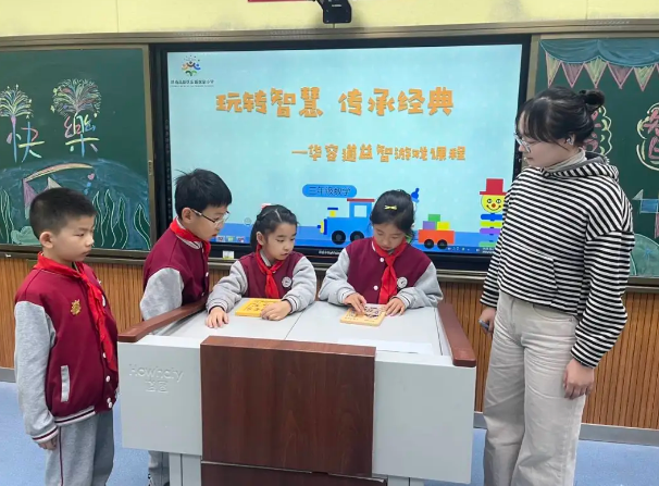 学校构建了拼板类、绳环类、榫卯类、棋艺类四大游戏类型的基础课程与融合课程,并按低、中、高学段进行梯度设计实施。各年级学生依据课程进阶体系,在游戏中体验传统文化智慧,提升思维品质。