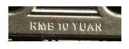在硬币正面面额数字“10”的底端,可观察到“RMB 10 YUAN”的微缩文字。防伪特征效果见图4。