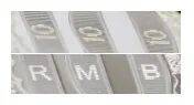 将硬币倾斜适当角度,可在正面面额数字“10”的轮廓线内,观察到两组由3个“10”和“RMB”构成的隐形图文。防伪特征效果见图3。