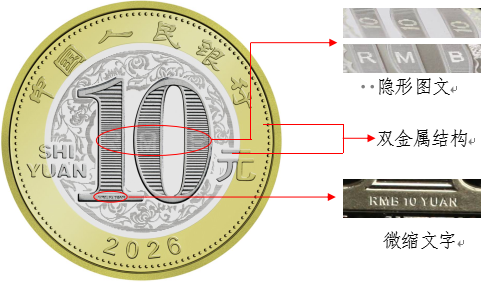 图5 2026年贺岁双色铜合金纪念币防伪特征示意图
