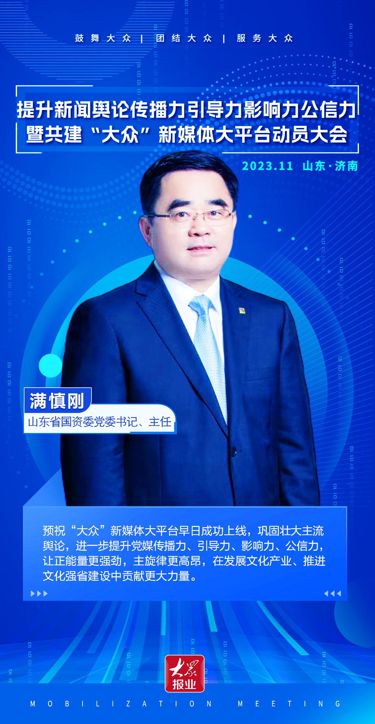 山东省国资委党委书记、主任满慎刚:预祝“大众”早日上线,让正能量更强劲