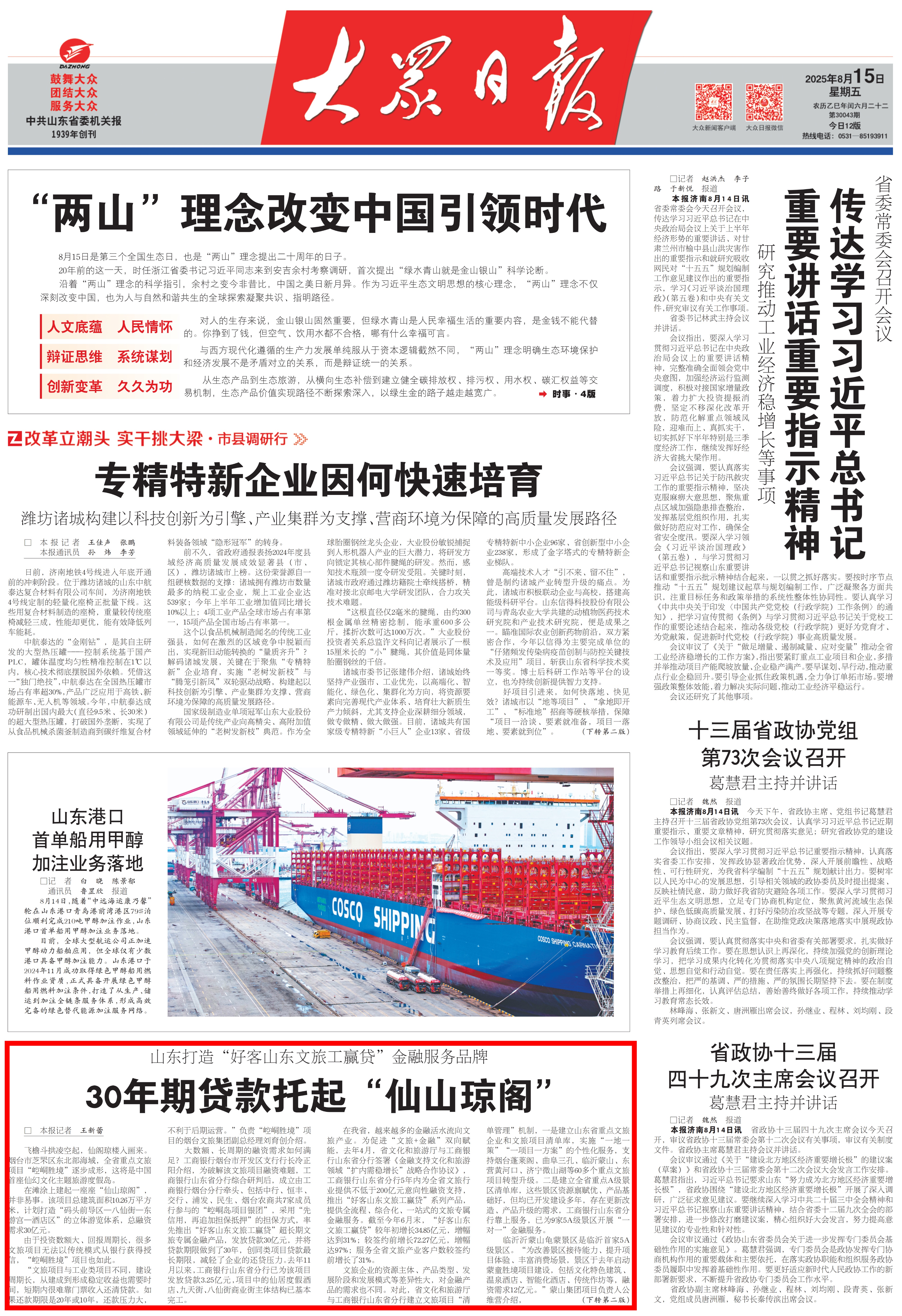 从精准滴灌实体经济的细腻之功,到稳定资本市场的担当之举,再到服务重大战略的深远之谋,这19篇头版报道共同勾勒出山东金融业活力涌动、稳健向前的年度图景。展望未来,山东金融血脉将持续澎湃,为“走在前、挑大梁”使命担当注入更为强劲的动力。