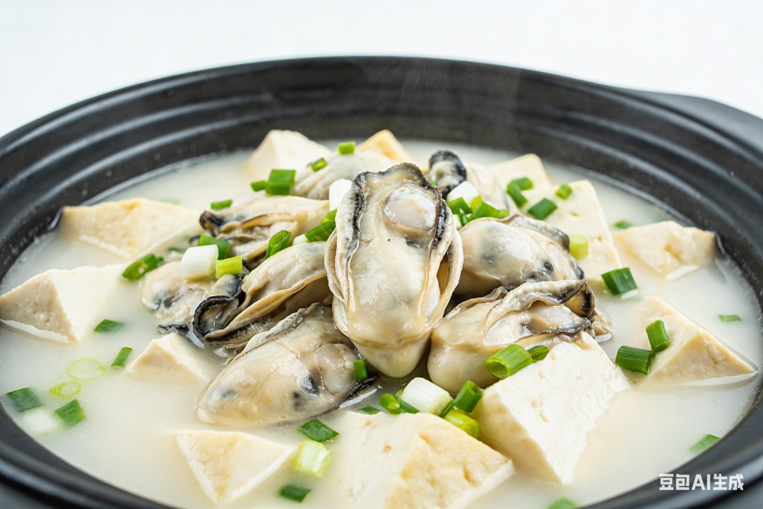 1.豆腐切条焯水,牡蛎取肉洗净。