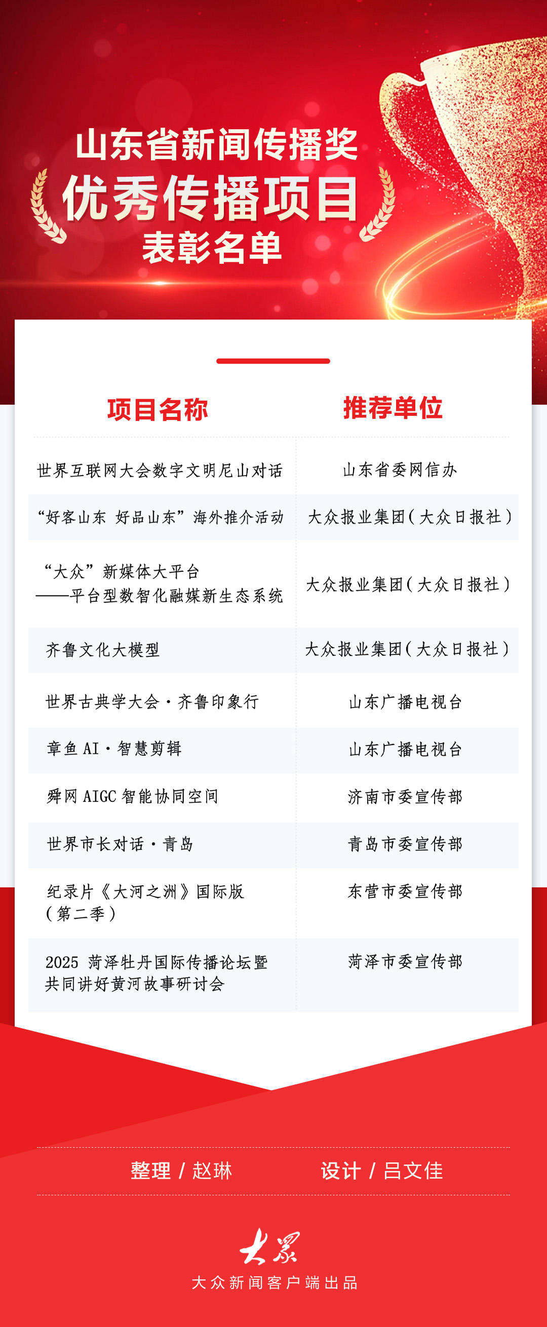 山东省新闻传播奖评选揭晓!10个项目、100件作品、30个集体、50位个人获表彰