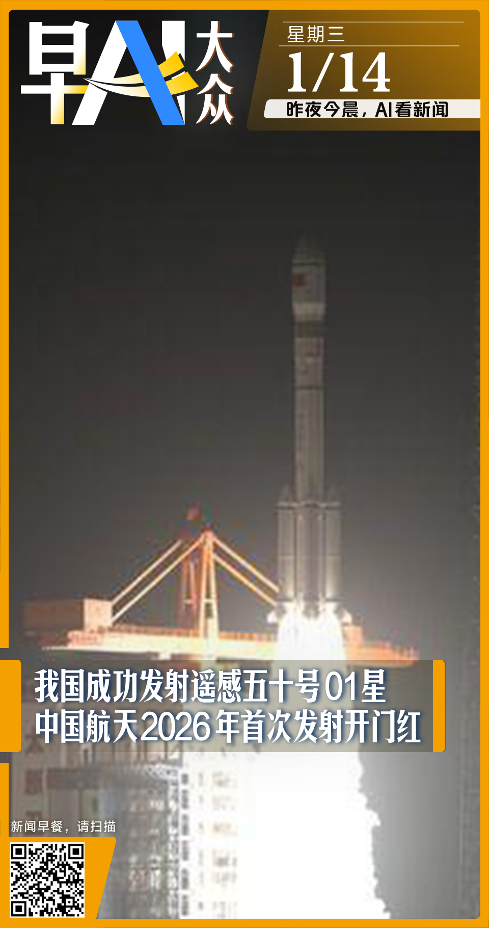 早AI大众|中国航天2026年首次发射开门红;世界银行上调今年全球经济增长预期