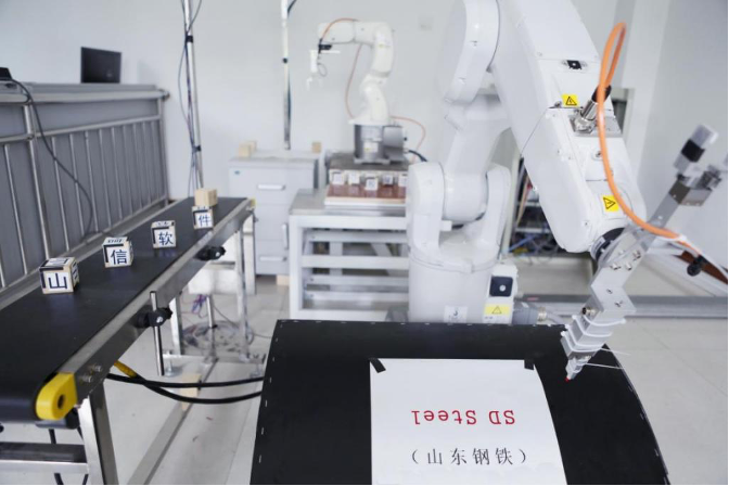 上万行代码,上千次数据分析,上百次反复实验。仿真、示教、实操、优化……2017年底,当“山信软件股份有限公司”几个字被搬运机器人操控的模块首次整齐摆出时,实验室爆发出欢呼。“这意味着,机器人研发的‘底座’——视觉系统和机器人联动控制技术被我们掌握了。”李明说。