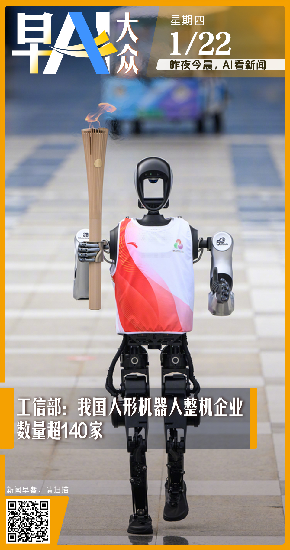 早AI大众|我国人形机器人整机企业数量超140家;美称不用武力暂缓加税