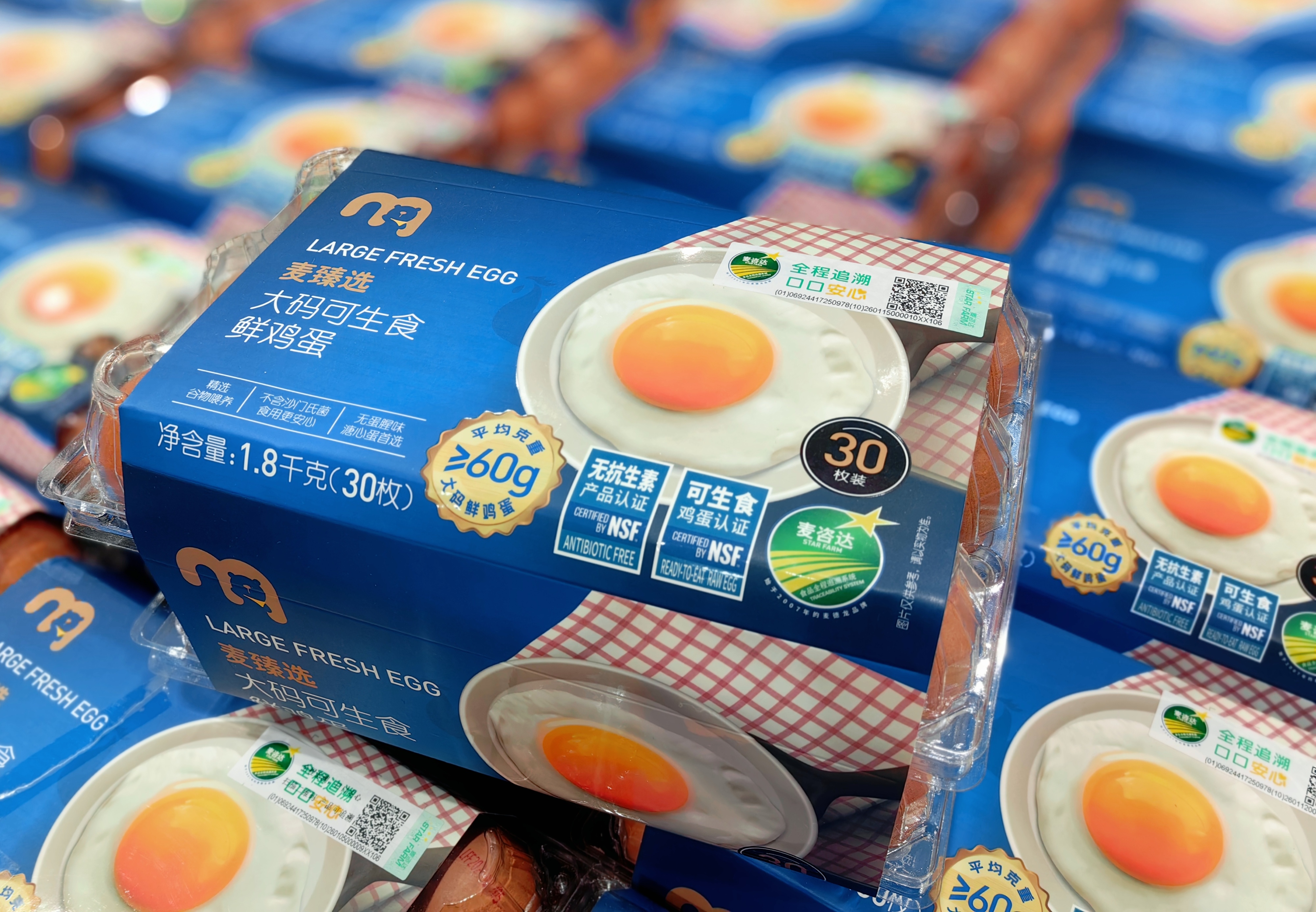 记者在现场拿起一盒“麦臻选可生食大码鲜鸡蛋”,用手机扫描包装上的“麦咨达”追溯码。页面立即清晰展示出这枚鸡蛋的“全生命周期”:从养殖场的环境信息、饲料情况,到蛋鸡的健康管理、蛋品的加工日期、质检报告,乃至运输温控记录,一目了然。“家里孩子喜欢吃溏心蛋,以前总担心普通鸡蛋有细菌。这种有可生食认证、还能追溯源头的,就特别放心。”正在选购的孙阿姨告诉记者。