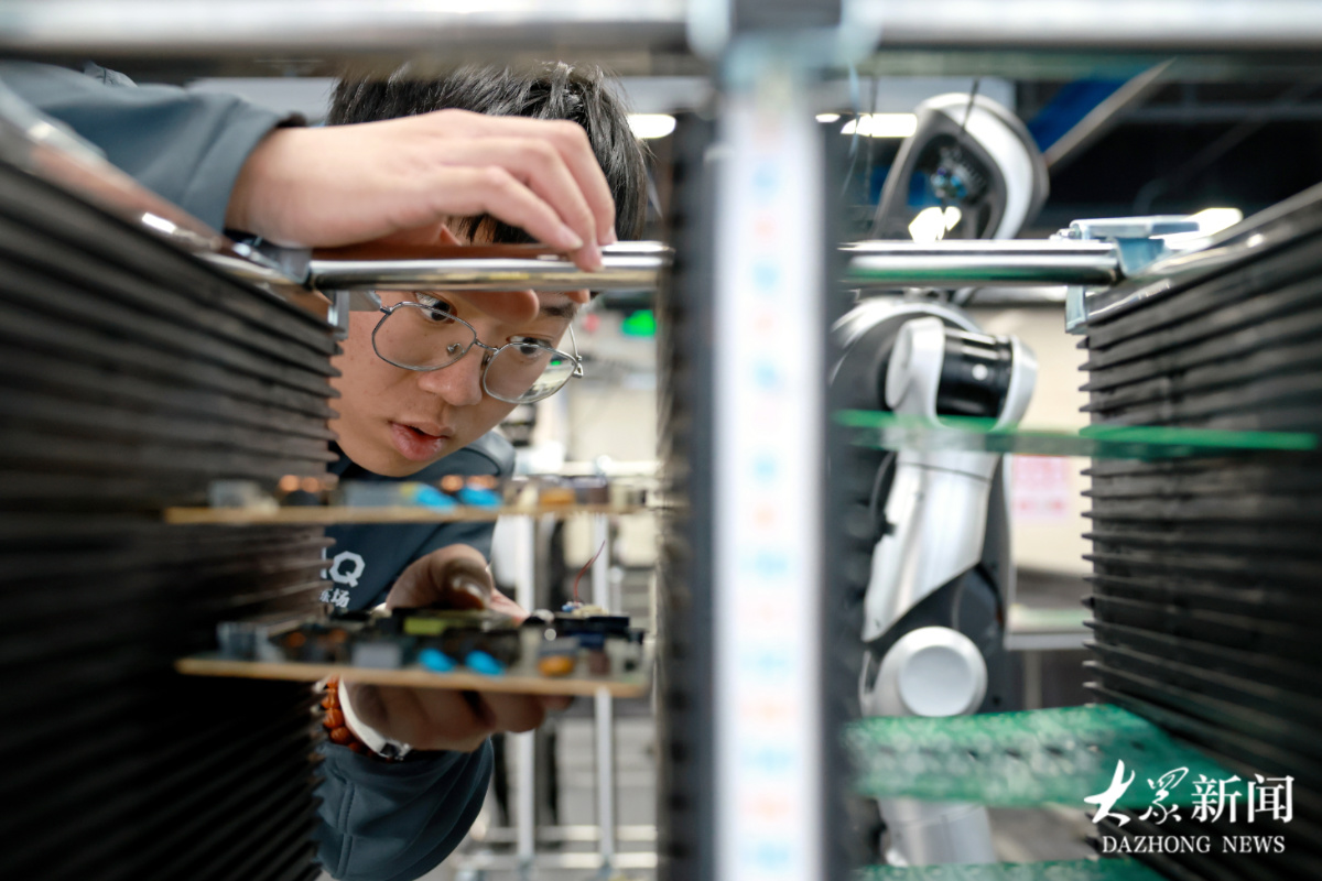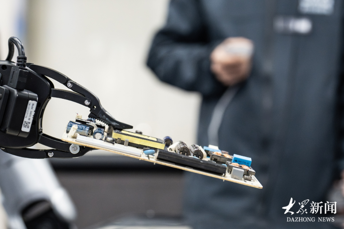 数据采集员正在复位电路板。同一场景下,数据采集员往往需要操控机器人对同一套动作反复进行1000多次以完成数据采集。