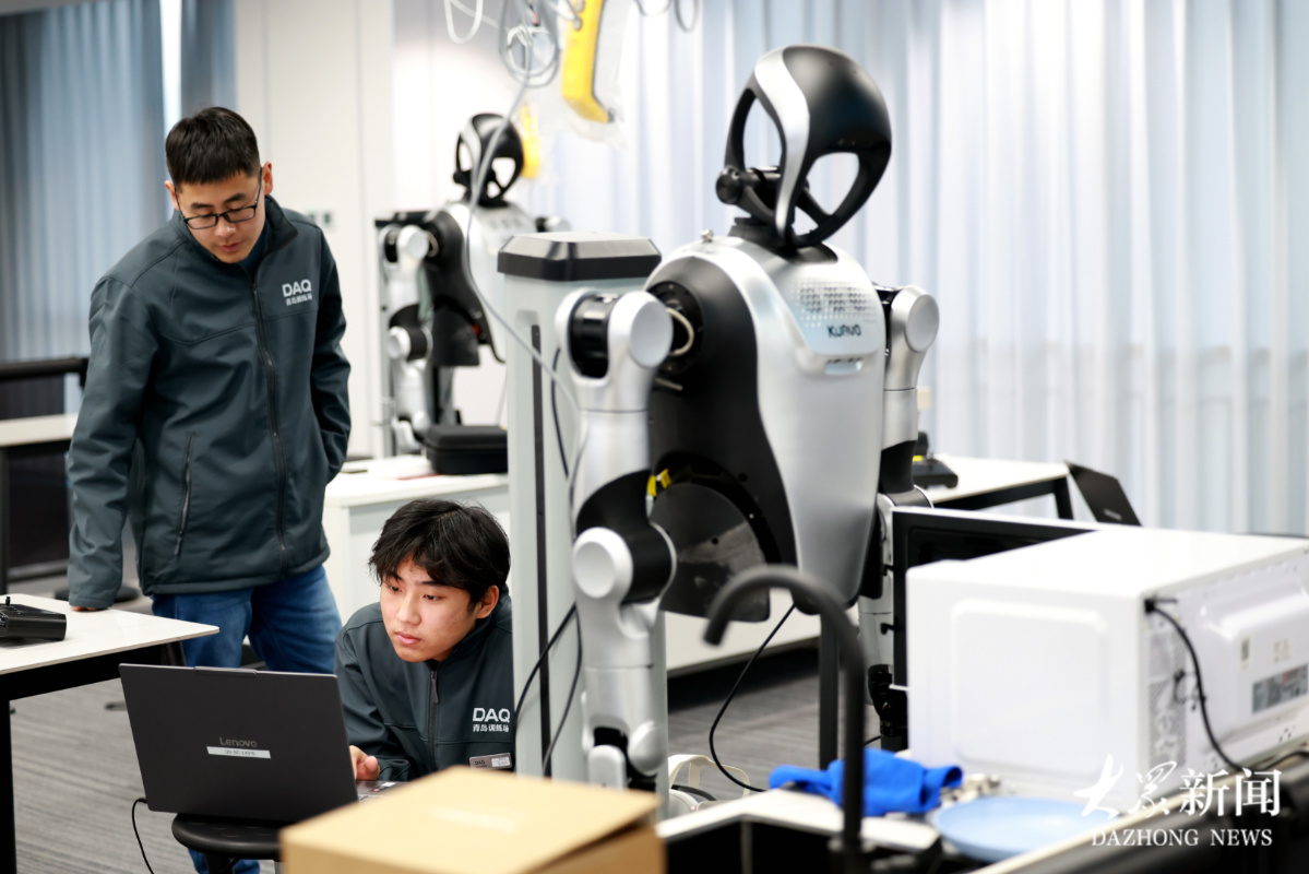 在首批机器人“老师”中,既有像电子信息工程专业的陈云龙这样操作熟练的“科班生”,也有入职前未曾接触相关技能的“行业小白”。李慧茹是鲁东大学2025届学前教育专业毕业生,通过培训,心灵手巧的她仅用一周左右就掌握了核心操作,即使专业不对口,也迅速适应了岗位要求,如今已成为团队中的收入佼佼者。中专毕业的张家铭则凭借勤奋与在机器人操控上展现的天赋,同样很快融入了这份工作。