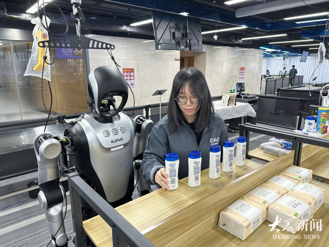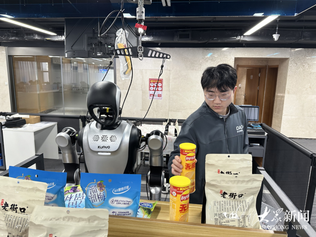 张家铭在商超场景下完成机器人规定动作后将物品复位。