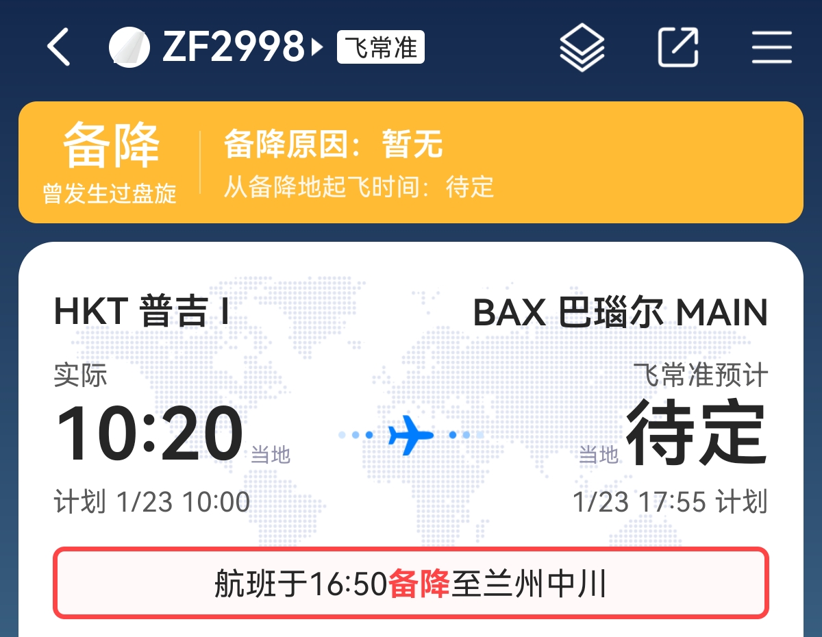 1月23日,记者从兰州中川国际机场获悉,23日泰国普吉至俄罗斯巴尔瑙尔国际客运ZF2998航班机组(机型757-200)宣布遇险状态、设置应答机编码7700,决定备降兰州中川国际机场。