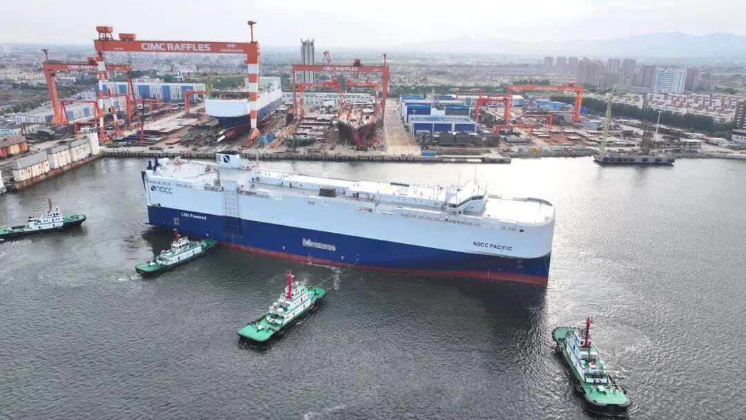 2025年11月,烟台中集来福士海洋科技集团有限公司建造的混合动力汽车运输船——“太平洋号”顺利建成交付。该船是全球首艘符合新能源汽车海运国际新标准的专用运输船,为国际新能源汽车海上安全运输提供了中国方案。