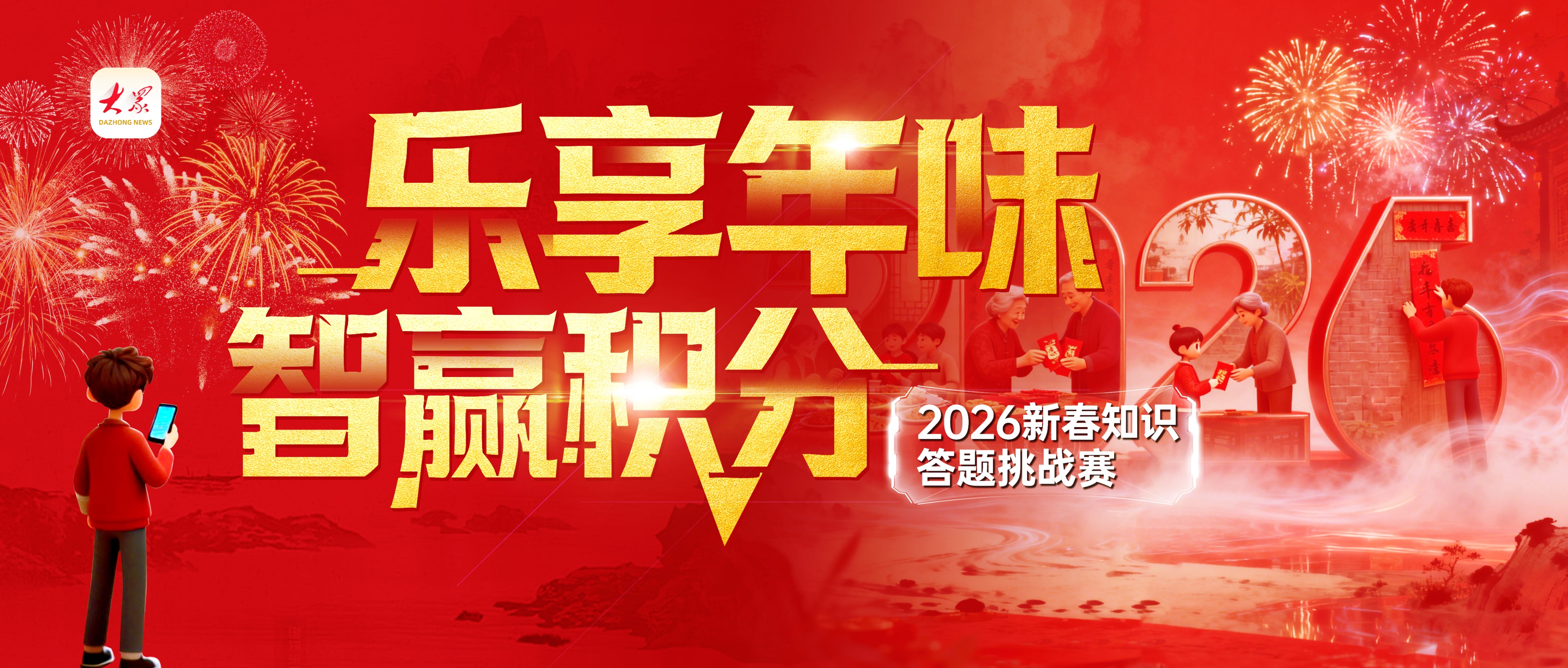 你知道贴春联的习俗起源于哪个朝代吗?你能准确说出十二生肖的排序传说吗?你了解春节相关的非遗技艺背后的故事吗?为传承中华优秀传统文化,唤醒深藏心底的年俗记忆,让更多人在趣味互动中读懂新春、品味年味,大众新闻客户端策划“乐享年味·智赢积分”2026新春知识答题挑战赛,邀你共赴一场趣味与干货并存的年俗知识之旅,用智慧赢取丰厚积分好礼!