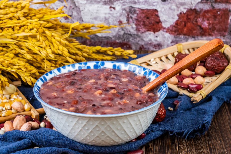 腊八粥也叫做七宝五味粥,以五谷为主要食材,讲究“五味调和”,有温暖、圆满、和谐等意。北方的腊八粥里可不止有五谷,桂圆、红枣、核桃、榛子、莲子、葡萄干、白果、松仁、玫瑰、红豆、花生等,五花八门。
