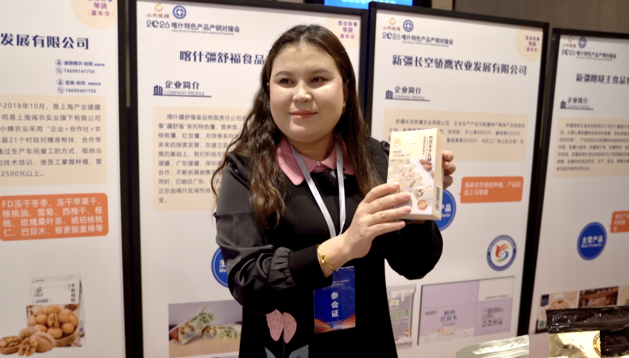 在产销对接区,喀什30余家企业的优质产品依次陈列,新疆小蜂农业创新发展有限公司销售经理迪丽娜尔·如则正忙着向采购商介绍此次带来的冬枣、巴旦木、藜麦能量棒等主推产品。她充满期待地说:“希望通过这次对接会,让莎车县的更多农产品走出新疆,帮助更多当地员工实现就业增收。”
