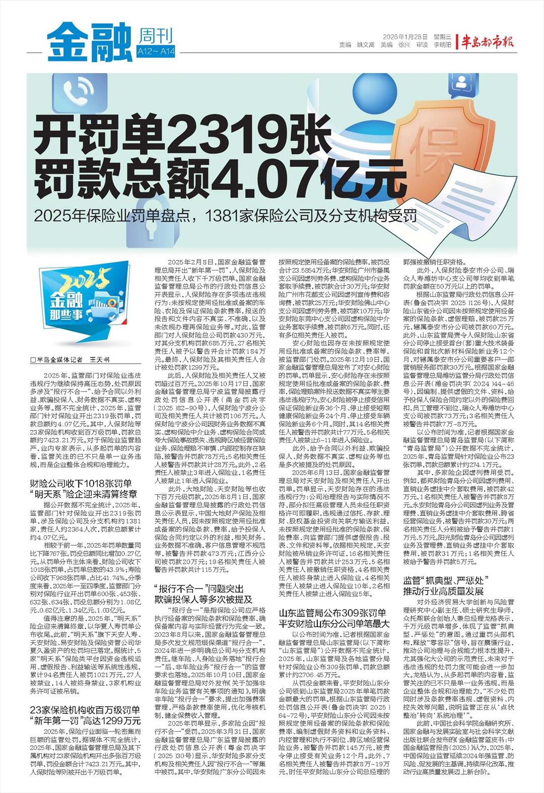 2025金融那些事儿|开罚单2319张,罚款总额4.07亿元!2025年保险业罚单盘点,1381家保险公司及分支机构受罚