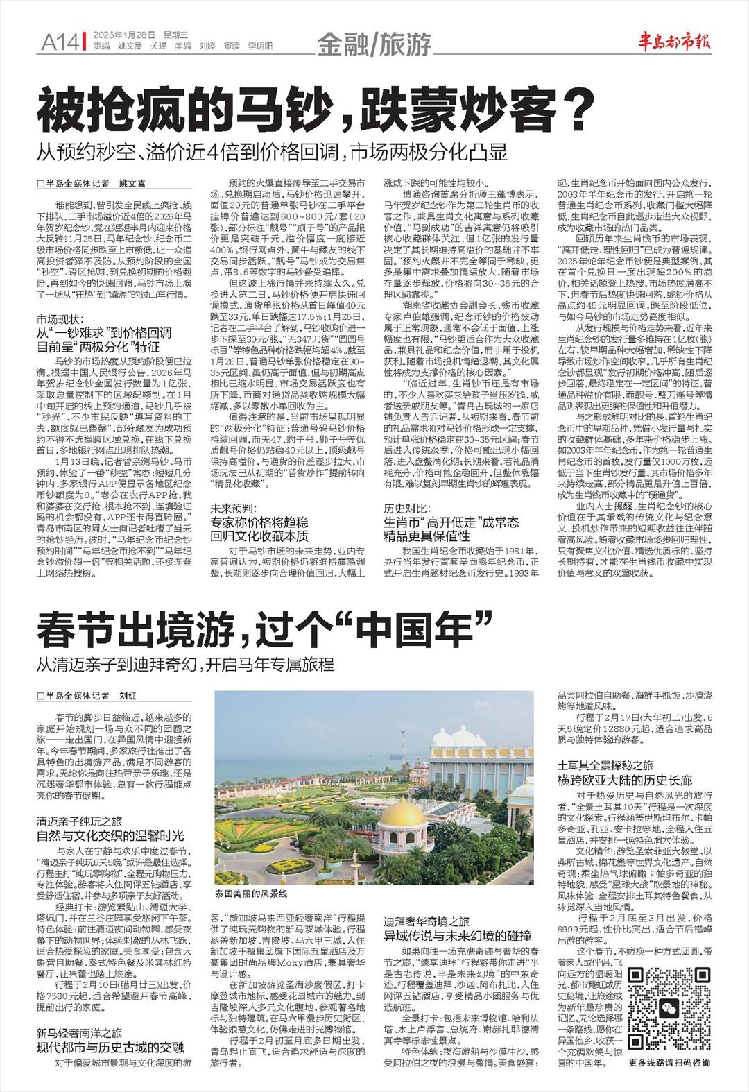 “临近过年,生肖钞币还是有市场的,不少人喜欢买来给孩子当压岁钱,或者送亲戚朋友等。”青岛古玩城的一家店铺负责人告诉记者,从短期来看,春节前的礼品需求将对马钞价格形成一定支撑,预计单张价格稳定在30~35元区间;春节后进入传统淡季,价格可能出现小幅回落,进入盘整消化期;长期来看,若礼品消耗充分,价格可能企稳回升,但整体涨幅有限,难以复刻早期生肖钞的辉煌表现。