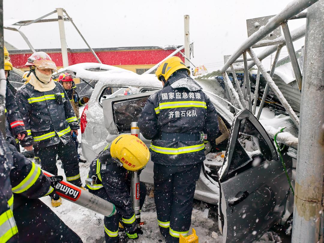齐鲁石化消防支队指战员救援被困群众 李壮摄