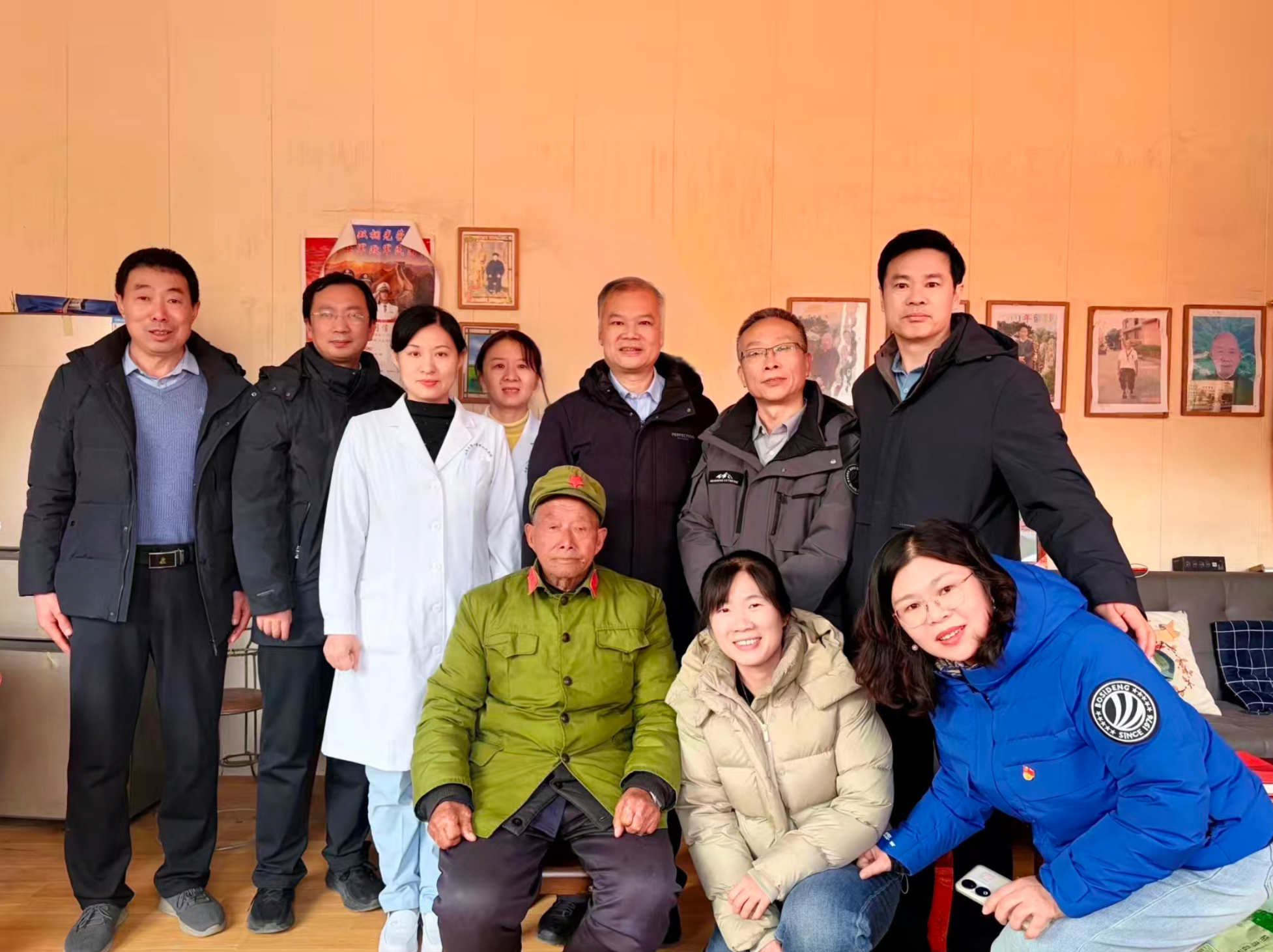 新春佳节将至,为深入落实常态化联系退役军人制度,切实做好拥军优抚工作,1月27日下午,省退役军人厅人事处党支部联合省第一荣军优抚医院有关党支部,前往济南市市中区十六里河街道瓦峪村、吴家村,开展“新春送温暖 情暖老兵心”主题党日活动。济南市市中区退役军人事务局党组书记、局长董凯一同参加。此次活动也标志着2026年度全省“康复医疗 情暖老兵”荣军志愿服务行动正式启动。