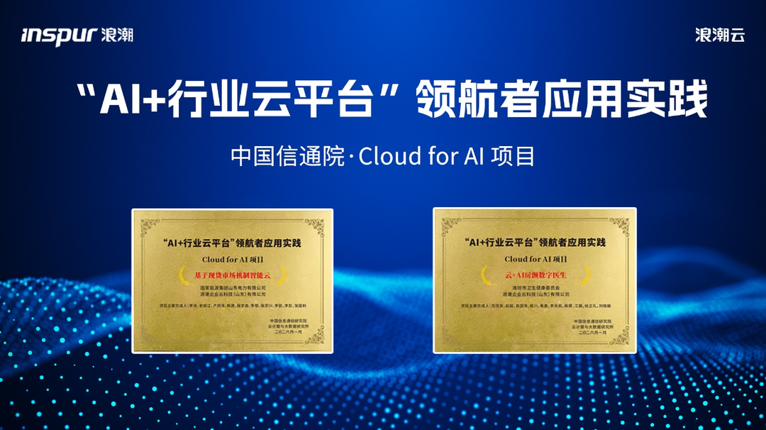 近日,由中国信息通信研究院主办的“行业云+AI”赋能产业高质量发展交流会在北京成功召开。会上正式公布了“AI+行业云平台”领航者应用实践结果,浪潮云联合客户提报的“云+AI房颤数字医生”“基于现货市场机制智能云”两项案例成功入选,充分展示了浪潮云在“人工智能+”赋能产业发展方面的技术积累与场景化能力。