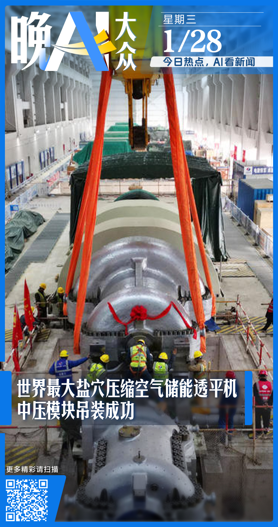 “心脏”就位!世界最大盐穴压缩空气储能透平机中压模块吊装成功