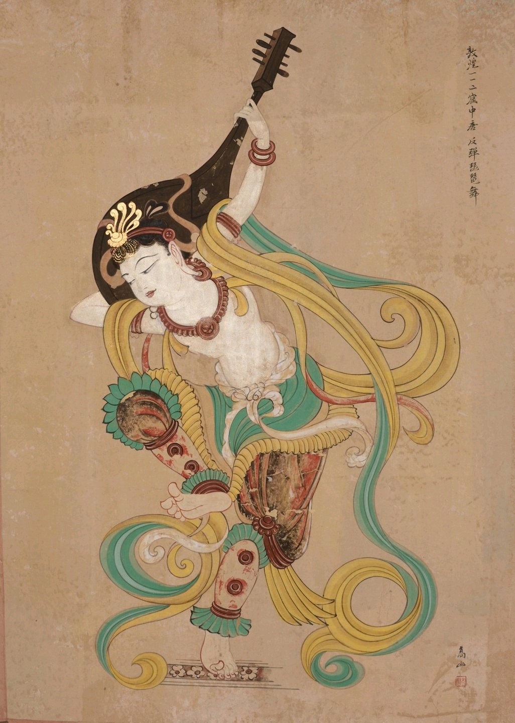 敦煌美术研究所专家作品《莫高窟第112窟·观无量寿经变·中唐》(修正临摹局部·反弹琵琶)