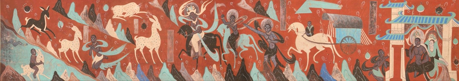 九色鹿本生图:取材第257窟北魏壁画,以矿物颜料色彩还原善恶寓言的传统叙事;