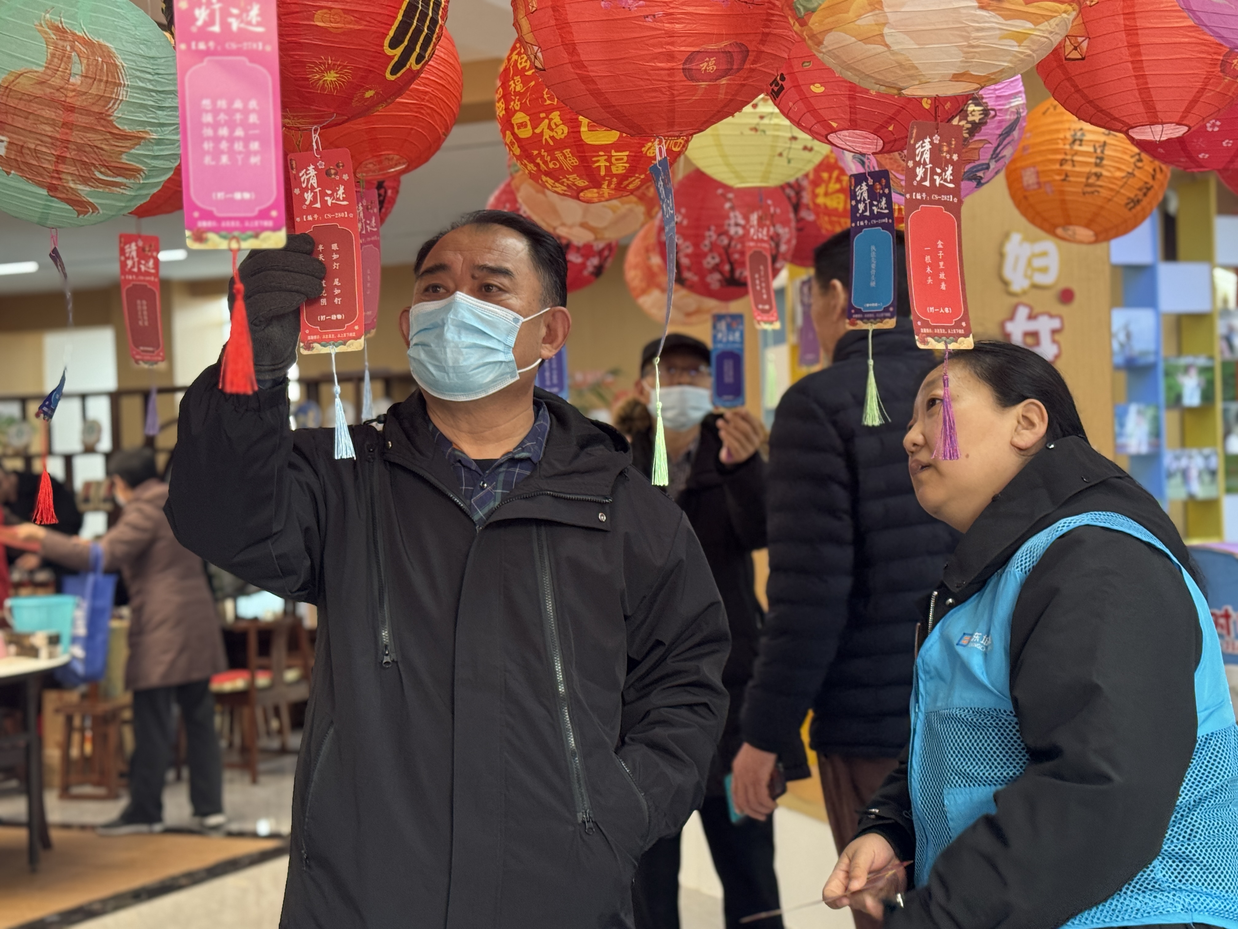 搭建整齐的灯笼长廊成为活动现场的一道亮丽风景线,100道涵盖春节习俗、马年文化、民俗知识的谜题悬挂其间,吸引了众多居民驻足参与。大家或独自思索,或三五成群讨论交流,不时传来阵阵欢声笑语。“一口咬掉牛尾巴(打一字)”“春节三日人人忙(打一字)”,一道道趣味谜题让大家在开动脑筋的同时,加深了对传统文化的了解。按照活动规则,猜对1道谜题即可领取精美礼品,大家踊跃答题,收获满满,在益智互动中感受着传统民俗的独特魅力。